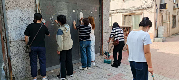 活动当天,社区工作人员与社区卫生服务中心的医护人员组成志愿服务小组,对小广告展开全面清理。每一处被小广告“侵占”的区域,都成为志愿者们的重点清理目标。先喷水软化,再用铲子小心翼翼地铲除,力求墙面恢复原本的洁净平整,不放过任何一志愿者们的辛勤付出,居民们看在眼里、暖在心里。