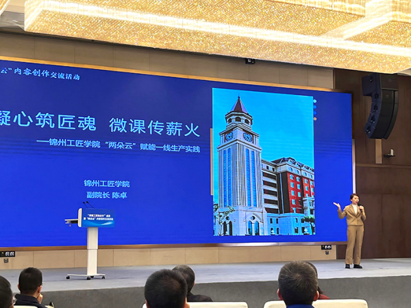 交流活动上,锦州工匠学院副院长陈卓以《凝心铸匠魂,微课传薪火》为题,向与会领导、嘉宾及代表作专题汇报。汇报聚焦学院培训工作核心,围绕课程体系设计、线上课程录制创新、典型案例解析、应用传播机制四个维度展开,条理清晰、内容详实,全面展现了学院在产业工人培训中的创新实践与显著成效,凸显了我市在职业培训领域的鲜明特色,获得全场一致认可与好评。